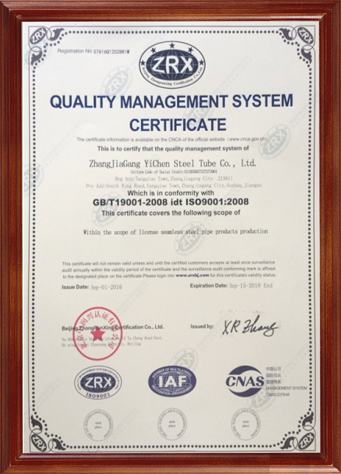 質(zhì)量管理體系認(rèn)證證書(shū)